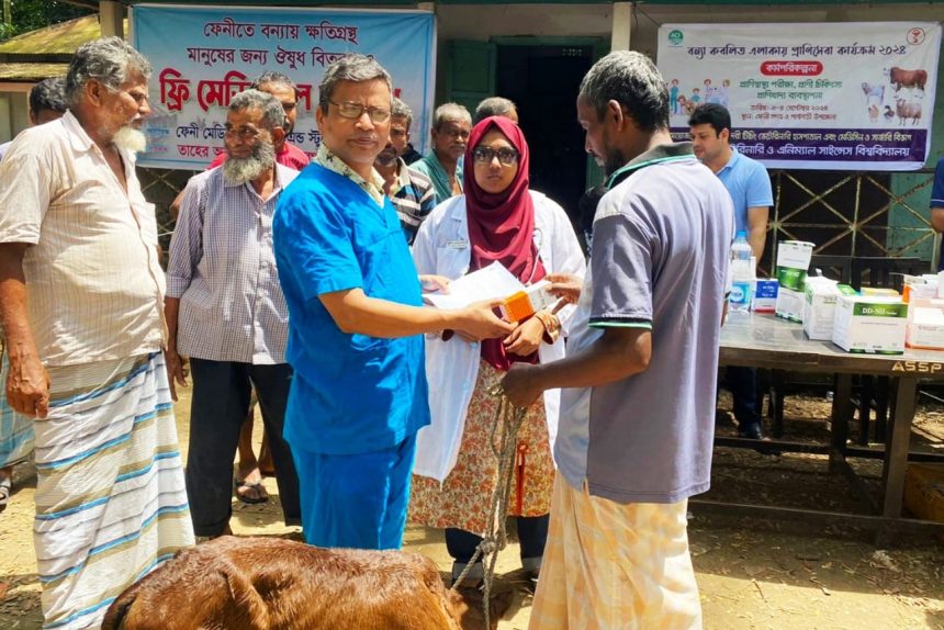 চট্টগ্রাম ভেটেরিনারি ও এনিম্যাল সাইন্সেস বিশ্ববিদ্যালয়ের (সিভাসু) উদ্যোগে ফেনী জেলার বিভিন্ন বন্যাকবলিত এলাকায় বিনামূল্যে প্রাণী চিকিৎসাসেবা এবং গোখাদ্য প্রদান করা হয়েছে।